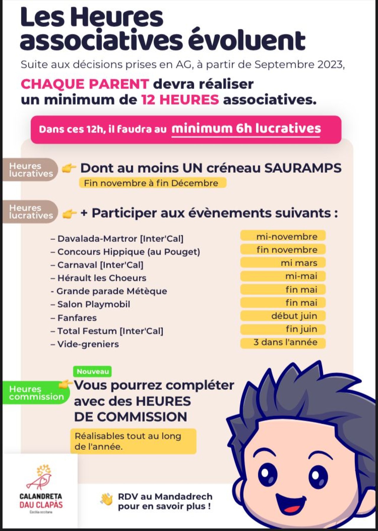 Calendrier de l'école et de l'association
